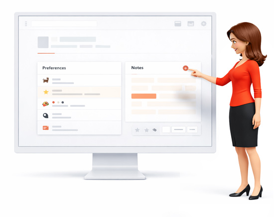 Track personal details like pets, hobbies, and past conversations with custom fields so every visit feels thoughtful, not generic.